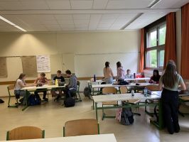 Trotz dieser ungewöhnlichen Ausgangslage war die Begeisterung der Teilnehmerinnen und Teilnehmer spürbar. Die Schülerinnen und Schüler feuerten sich gegenseitig an, tauschten Strategien aus und diskutierten angeregt über die mathematischen Konzepte hinter den Spielen.