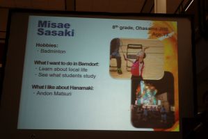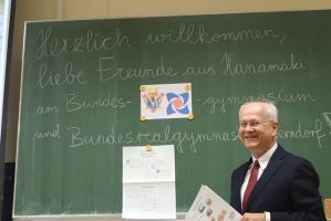 .... verschiedenen Junior High Schools aus ganz Hanamaki besuchte uns unter der Leitung von Frau Prof. Kimiko Segawa. Von der Oohasama High School, mit der wir schon seit 1997 regelmäßig in Kontakt sind, kam unter der Leitung von Herrn Vizedirektor Yoshiharu Sukekawa eine Oberstufendelegation aus einer Schülerin und einem Schüler. (Anmerkung: Manche unserer japanischen Freunde schlagen die Schreibweise Oohasama mit doppeltem O vor.)