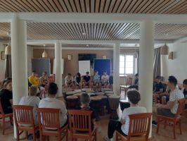 Nach langer coronabedingter Pause war es nun wieder so weit. Alle 2. Klassen machten sich am Samstag, dem 21.5.2022 am Weg nach Murau, um dort ihre erste Projektwoche mit dem Gymnasium zu erleben. Auf dem Programm standen tägliche Schwimmeinheiten, Wanderungen, Trommelworkshops und Spiele aus aller Welt.